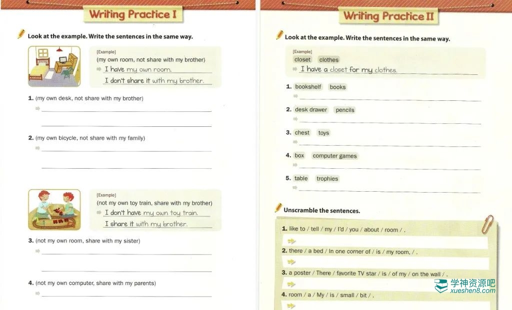以上3个级别的写作教材,每套78页内容,还附带练习册。