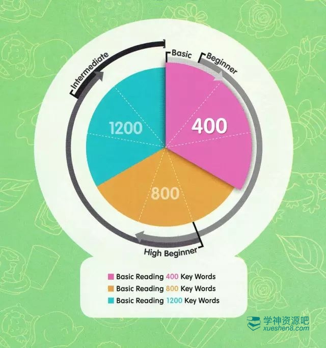 从200词到1200词分为四个阶段,带孩子接触至少1000个核心词!适合英语刚刚启蒙到小学毕业左右水平的英语初级阶段孩子。