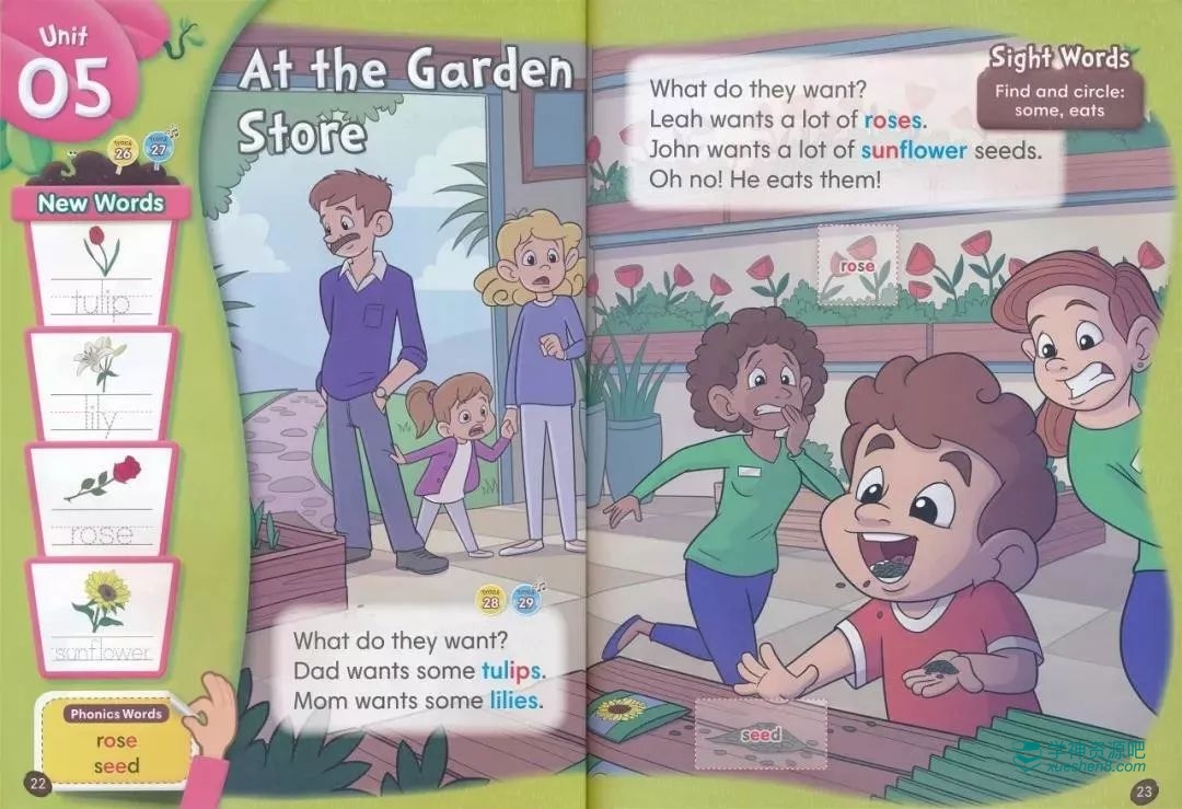 每个单元都特别注重Phonics 和 Sight Words的学习,带孩子快速积累最初的词汇量。