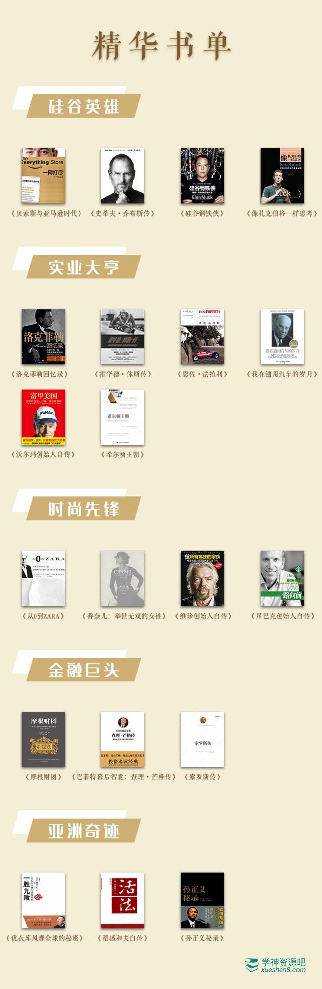 这是一门系统经典的商学实战课,商业案例源自权威商业传记书单,从纽约时报十大好书、亚马逊年度好书等排行榜中严挑细选。