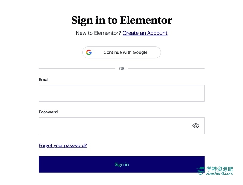 如果你还没有账号就先创建一个账号(免费帐户即可),Elementor官网
