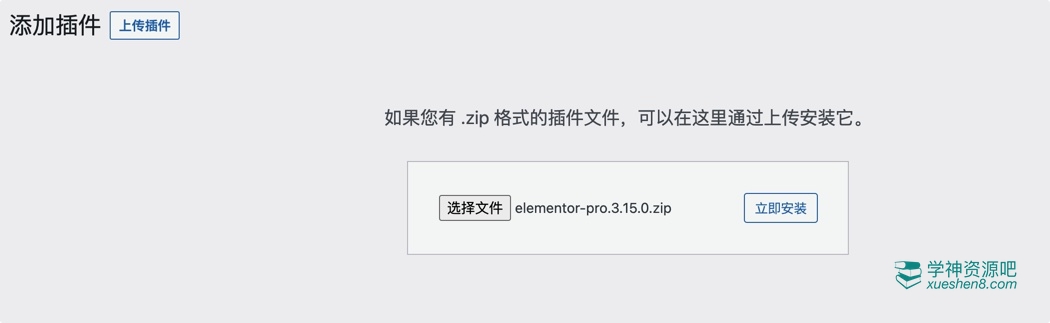 返回到插件安装界面,点击添加插件,并通过上传方式安装插件。