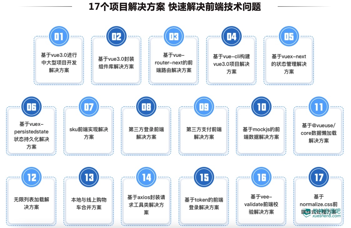从Vue3.0基础到项目实战,一门课程让你获取到市场主流热门技术和业务解决方案,组件封装原理也能有项目经验的积累,助你快速晋级前端开发,打开升职加薪道路。