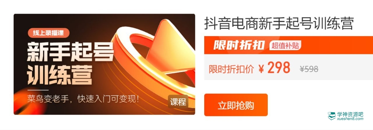 抖音电商新手起号训练营。