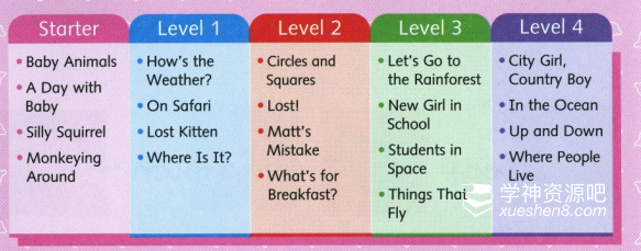 牛津小书虫系列包含三个部分:Oxford Dolphin Readers、Oxford Read and Discover、Oxford Classic Tales,覆盖了日常生活、科学自然、经典文学三大领域的英语阅读和词汇练习。