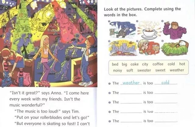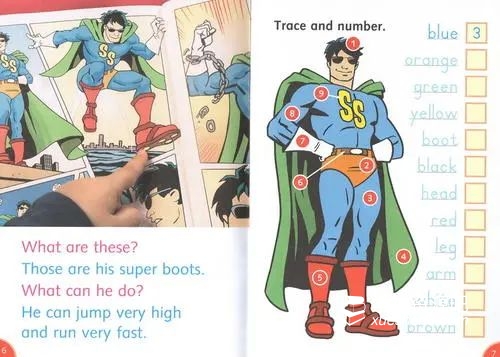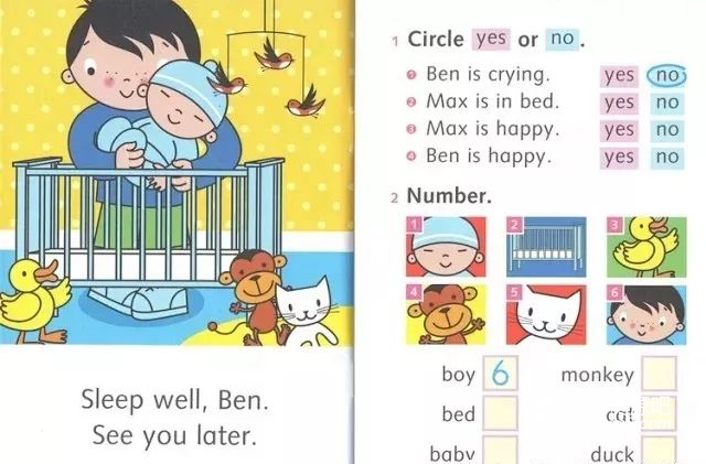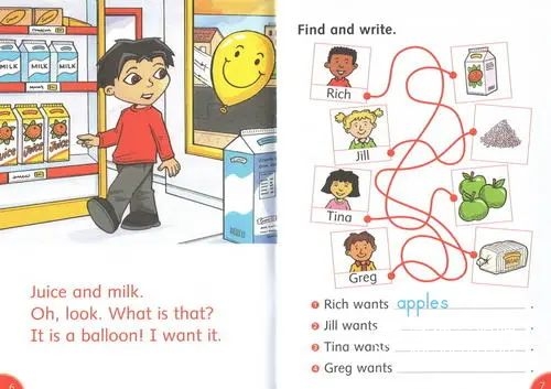 每一页的内容都有对应的练习,让孩子马上能巩固刚刚接触到的内容。每本书都搭配一本练习册(activity book),题型有连连看、写字、句型练习、短文写作等等,让刚开始接触英语的孩子,在简单的练习中积累基础词汇和语法知识。