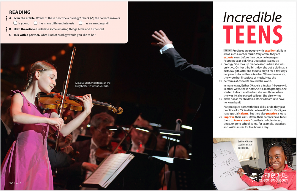除Starter外,1-4级别每个级别均设有12个单元,无论是班级授课还是自学,都可以被分为四大板块: