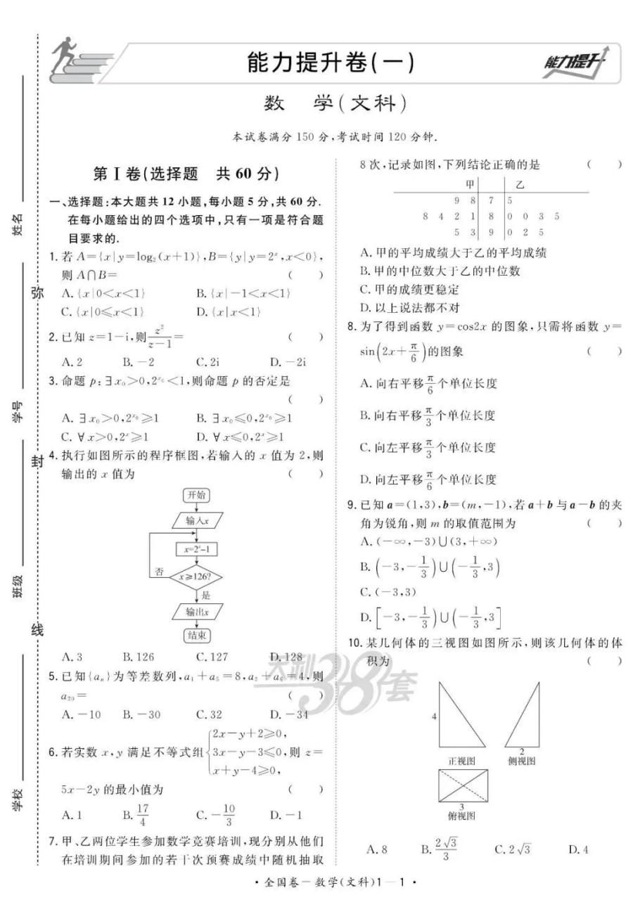 文科数学(篇幅原因仅展示第1页)