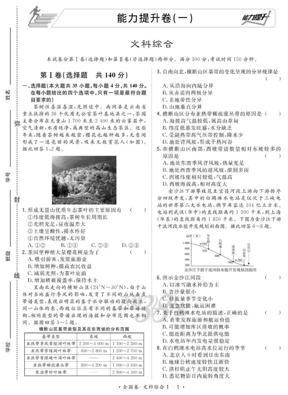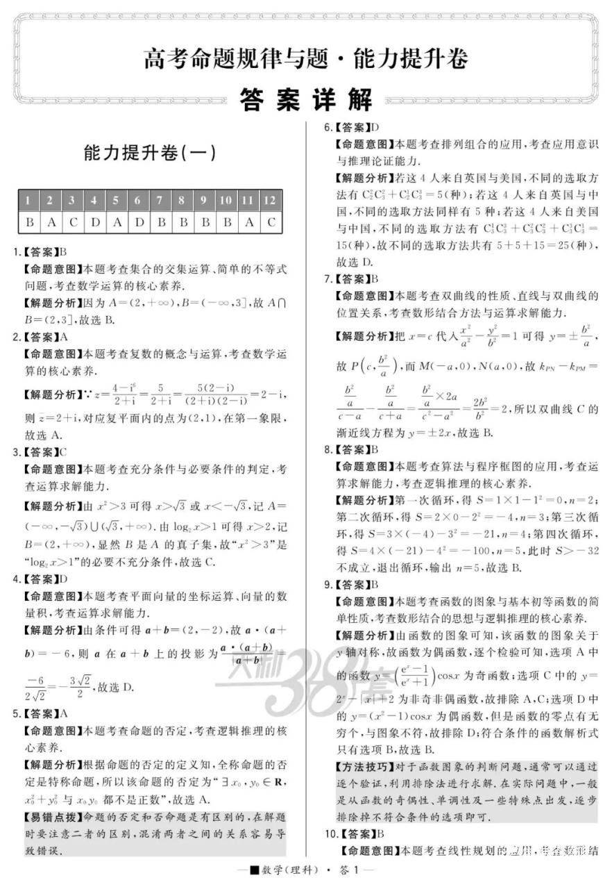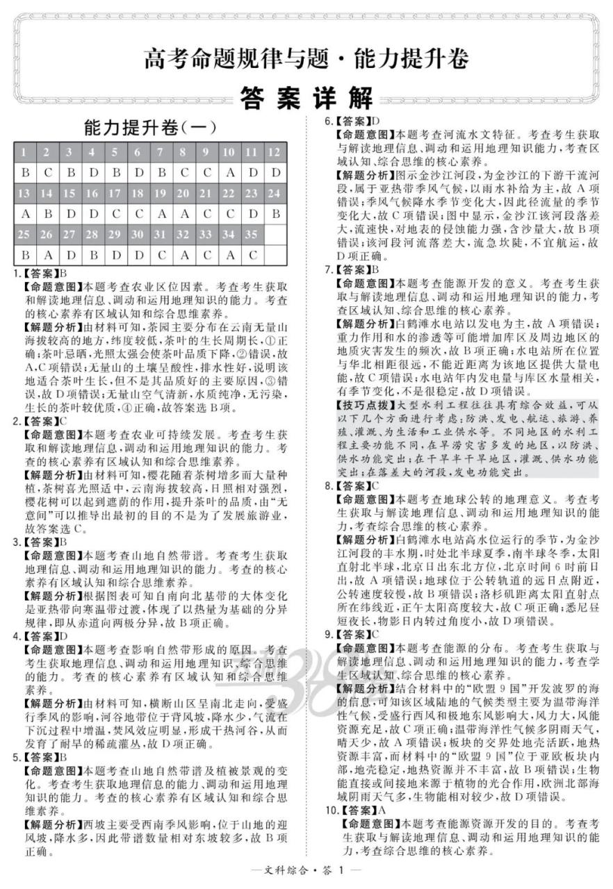 能力提升卷都是套卷,要用平常联考或者参加高考的态度来对待,有老师这样说过:“把模拟要当成高考,把高考当成模拟!”只有平常树立正确的学习观念,在高考时才不会紧张,不被考试的焦虑所影响。最后还是要积极用心去整理错题。