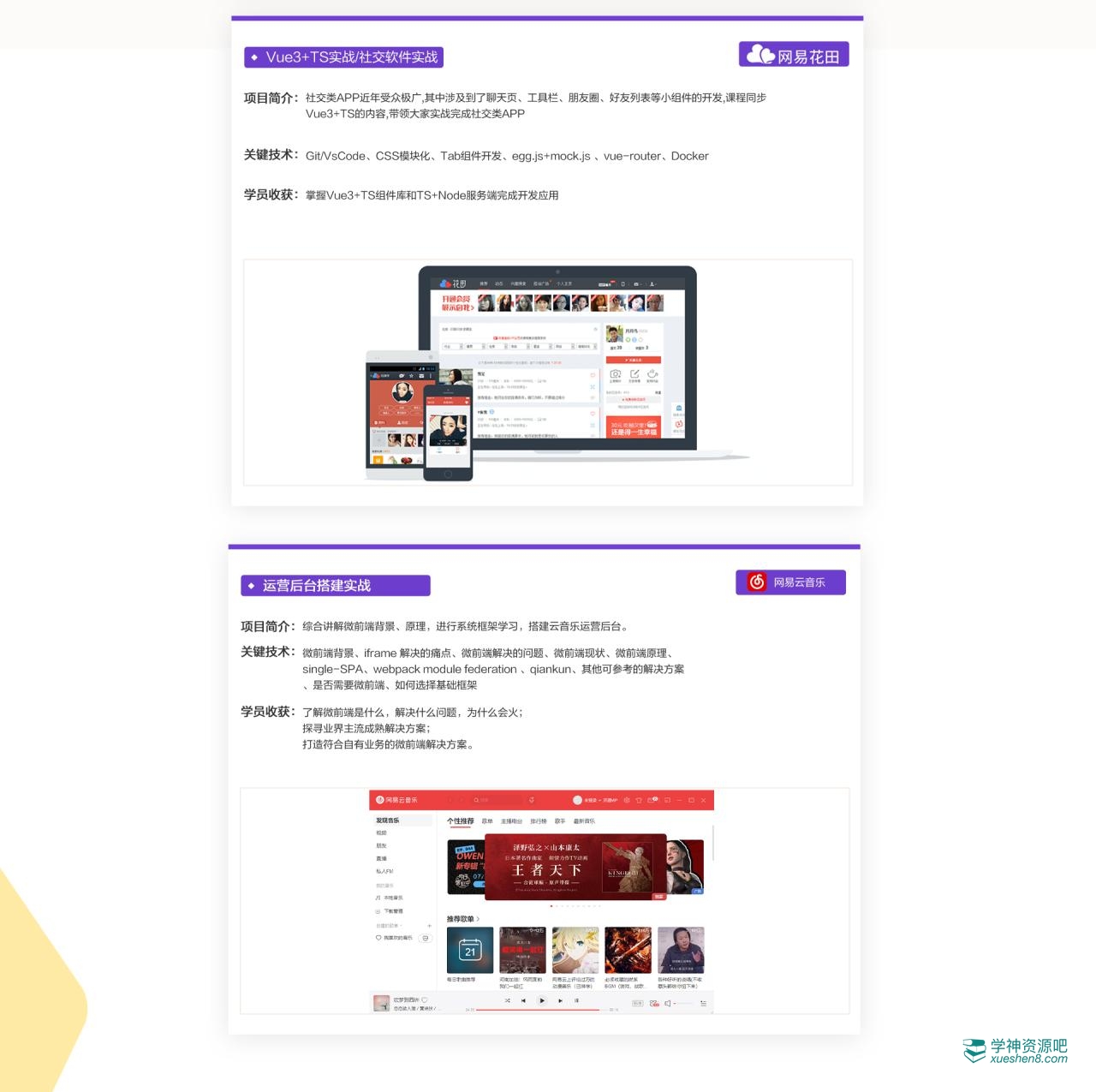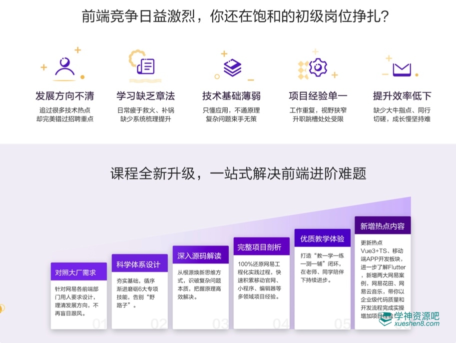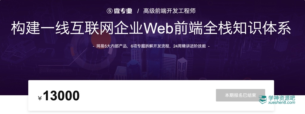 网易微专业-高级前端开发工程师,本套课程出自易云课堂官网售价12000元,由学神吧精心整理发布。本课程是一套基于一线互联网企业的Web前端全栈知识体系化课程,全面讲解精讲前端进阶技能,围绕企业级项目实战,掌握完整项目开发流程,深入源码解读,以实际项目为例,更新热点Vue3+TS、移动端APP开发板块, 进一步了解Flutter新增两大网易案例,网易花田、网易云音乐,带你以企业级代码质量和开发流程完成实操增加项目经验,带领你构建一线互联网企业Web前端全栈知识体系。