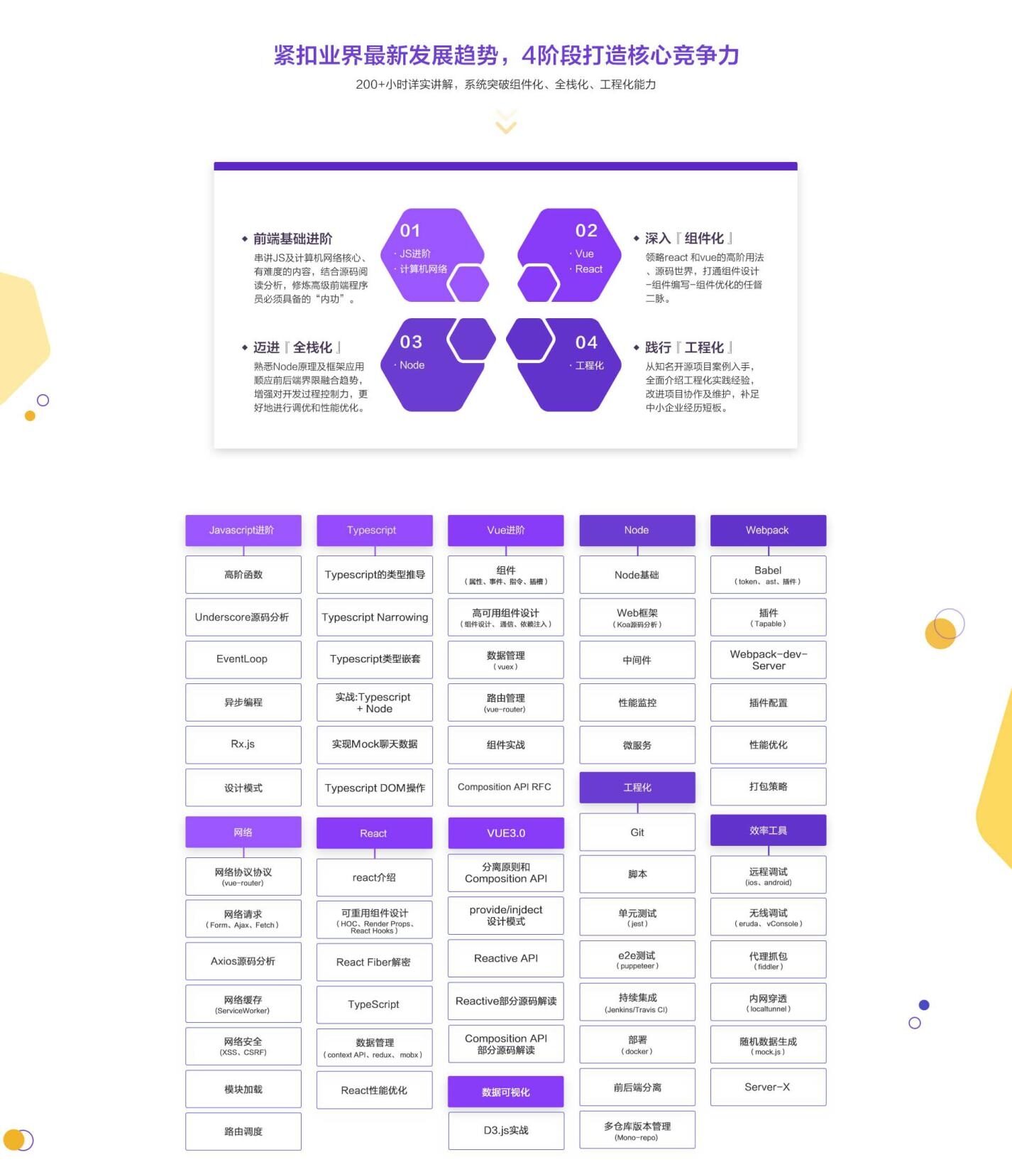 200 小时详实讲解,系统突破组件化、全栈化、工程化能力
