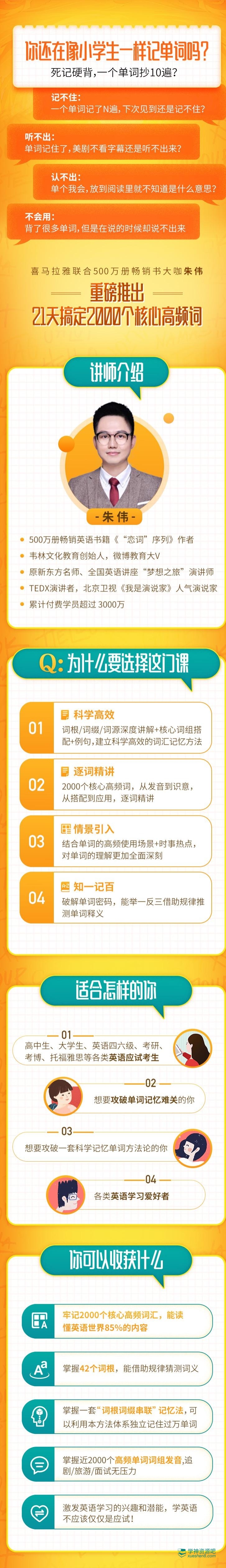 朱伟: 21天英语单词速记营(2000词) – 3000万学员欲罢不能的单词记忆法 新东方前20年功勋教师朱伟亲授