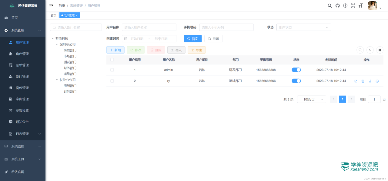 RuoYi-Cloud是一个 Java EE 分布式微服务架构平台,基于经典技术组合(Spring Boot、Spring Cloud & Alibaba、Vue、Element),内置模块如:部门管理、角色用户、菜单及按钮授权、数据权限、系统参数、日志管理、代码生成等。在线定时任务配置;支持集群,支持多数据源。