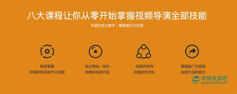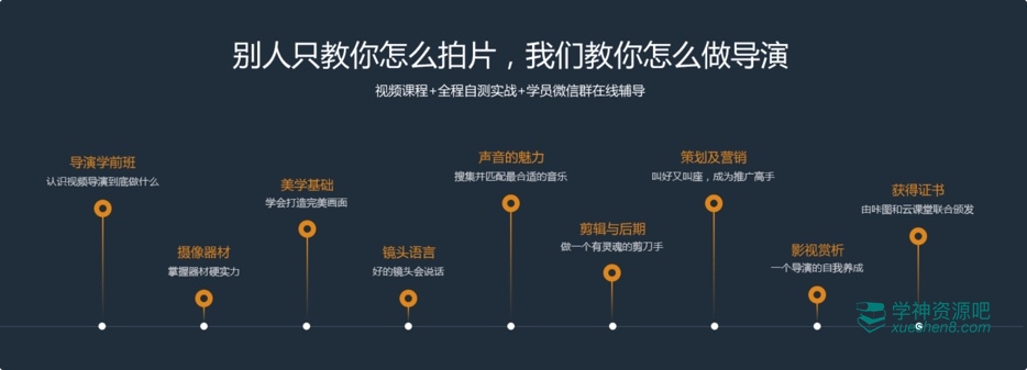 咔图摄影出品的新媒体视频导演教程价值2298元,不单单是教你如何拍片,更多的是教你如何做导演,课程分为八大块,从导演学前班教你导演到底是做什么的?再到摄像器材的掌握、镜头语言、声音的魅力如何匹配合适的音乐、剪辑与后期的处理、策划营销成为推广高手、影视赏析导演的自我养成教你从零开始掌握视频导演全部技能。